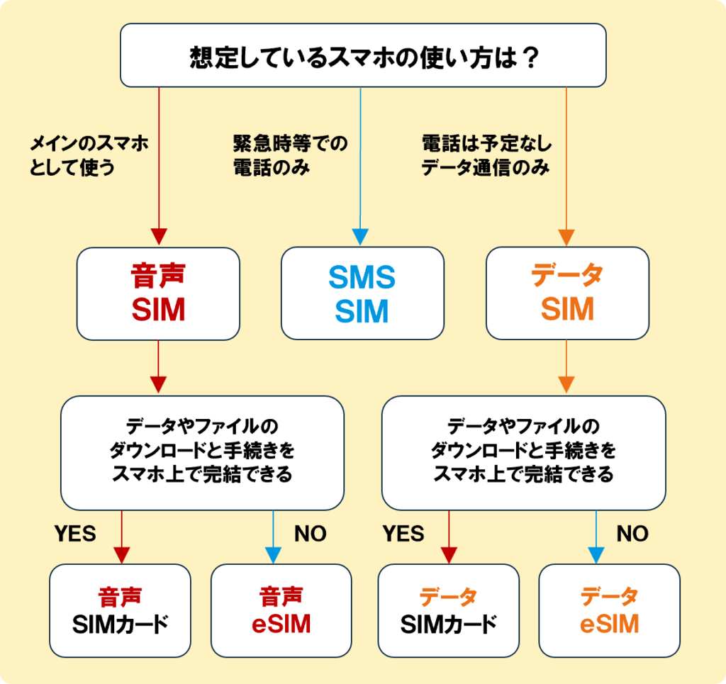 やり方はここまでの解説の通り。まずはデータ通信と通話のバランスからSIMを選び、そして手続きのしやすさからSIMの形状を絞りましょう。